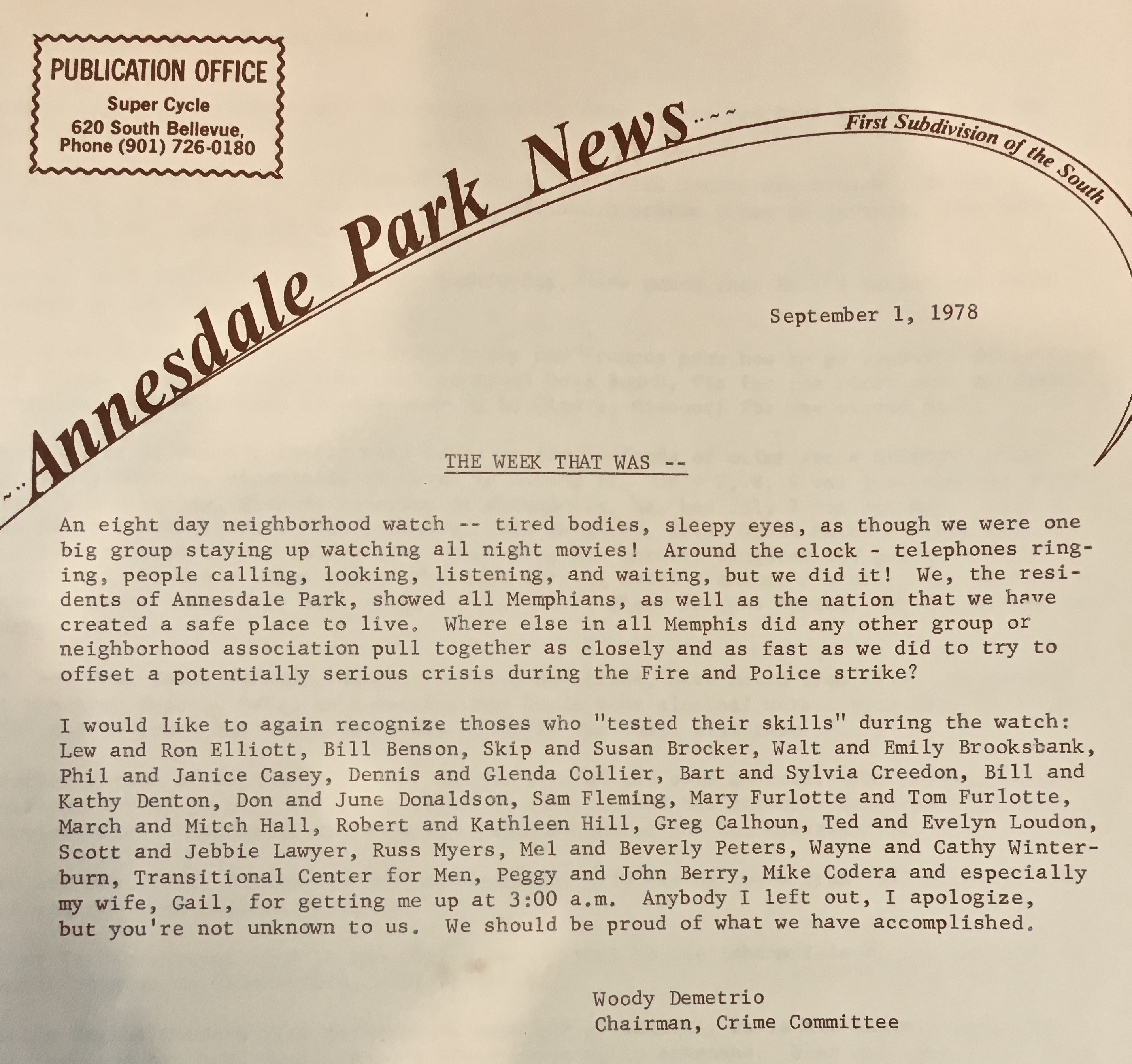To many, there was an air of here we go again, with echoes too familiar to Memphians. With police officers striking in unity with the firefighters, citizens (such as those in Annesdale Park, below) took measures to protect themselves, and the fear of anarchy was very real.