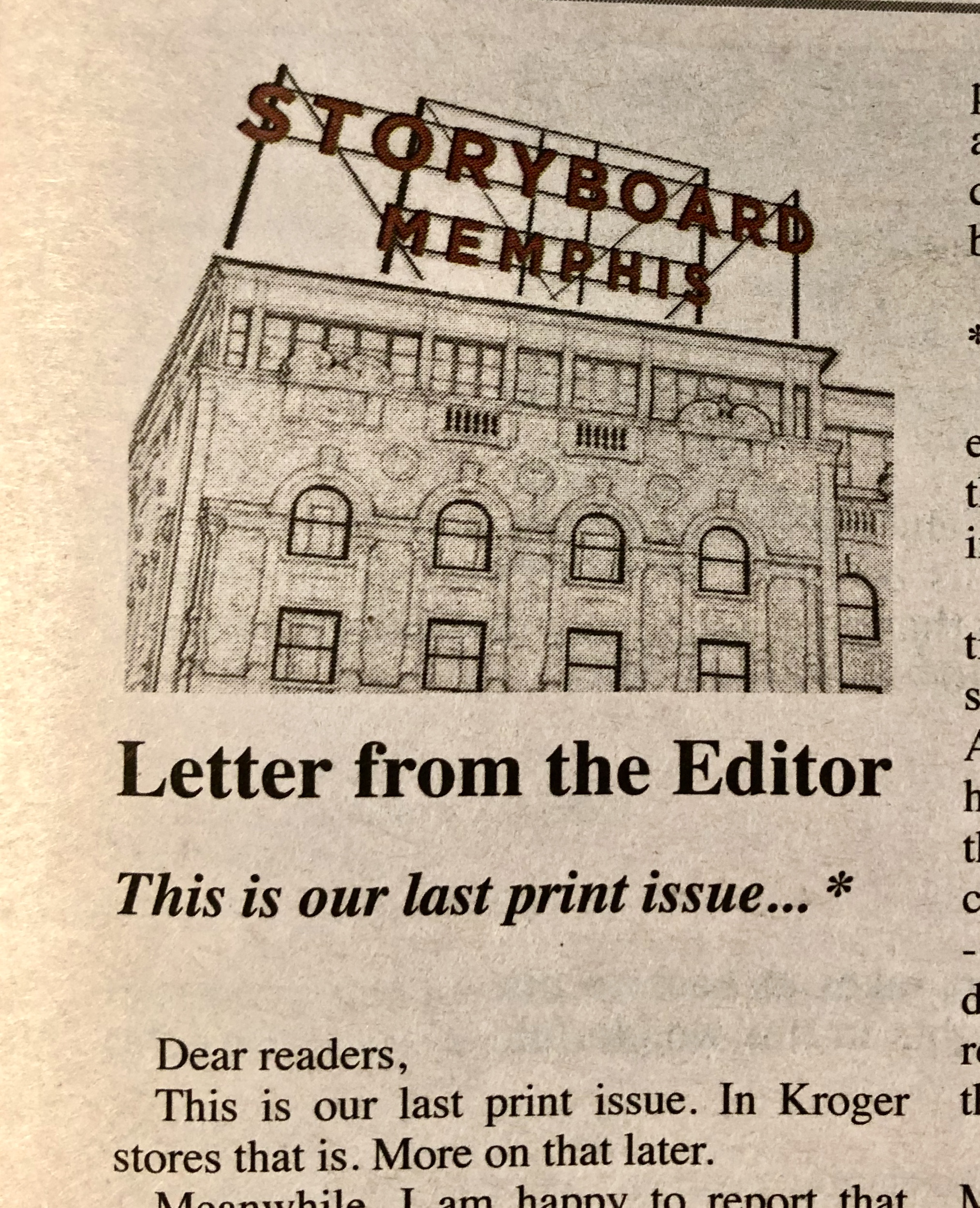 As for StoryBoard, we stand arm in arm with our fellow free publications around town, and like them we are pursuing other grocers and businesses around town who do have strong commitments to serving their neighborhoods. We will also be doubling up on our distribution to other businesses and institutions with a commitment to the neighborhood – the Memphis Public Libraries, community centers, independent grocers, etc. – and to any other large or small place of business.